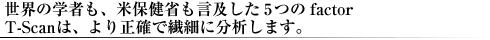 T-Scanは、生活習慣病の主原因である肥満診断と予防、その改善の終始に立つ体成分分析器で身体の電気抵抗を測定して分析するBIA法(Bioelectrical Impedance Analysis)と多周波測定法、部位別の分析法を利用します。